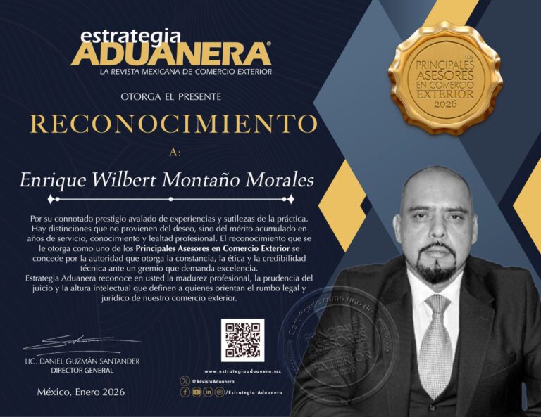 Es un honor compartir con ustedes que nuestro Director General ha sido condecorado como uno de los "Principales Asesores en Comercio Exterior" para el año 2026.